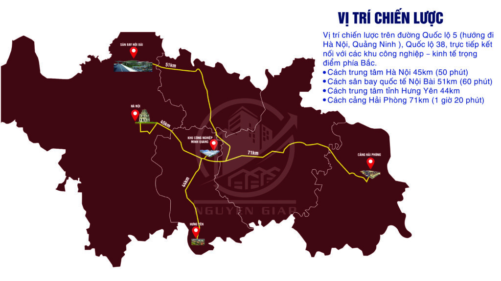 Dự án nhà xưởng xây sẵn Global Base nằm ở tỉnh Hưng Yên, có nhiều lợi thế phát triển, khi chủ trương của tỉnh có nhiều định hướng trở thành “thủ phủ” công nghiệp thứ 2 miền Bắc. Ngoài ra, dự án nằm trong KCN Minh Quang nên gần các tuyến đường lớn, dễ dàng kết nối, tối ưu chi phí.