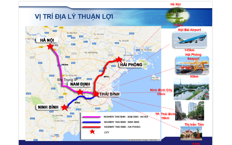 Vị trí địa lý chiến lược: CCN Tiền Hải, nằm trong vùng kinh tế trọng điểm Bắc Bộ, vị trí trung tâm dễ dàng giao thương kết nối với các khu vực và tỉnh thành lân cận