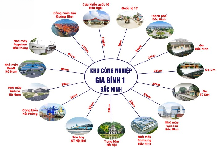 Khoảng cách từ khu công nghiệp Gia Bình tới các cửa ngõ kinh tế quan trọng