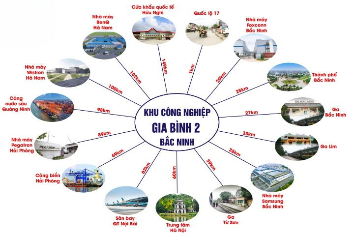 Khoảng cách từ khu đô thị Gia Bình II tới các cửa ngõ kinh tế quan trọng
