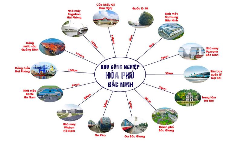 Cách nút giao Quốc lộ 18 khoảng 6km, KCN Hòa Phú dễ dàng kết nối với các vùng qua các tuyến đường trọng điểm: Cao tốc Nội Bài – Lào Cai, Quốc lộ 3 Hà Nội – Thái Nguyên, Quốc lộ 1A, Cao tốc Hà Nội – Hải Phòng, Quốc lộ 18 đi Quảng Ninh. Do đó, các doanh nghiệp lựa chọn KCN Hòa Phú là những người có tầm nhìn chiến lược và định hướng phát triển lâu dài.