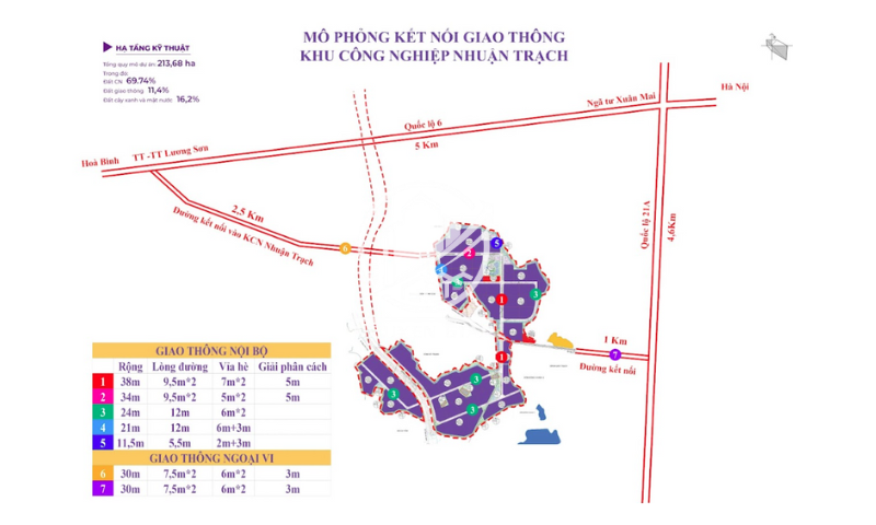 Giao thông nội khu: rộng rãi, có 5 tuyến đường chính, tuyến rộng nhất 38m, tuyến bé nhất 17,5m