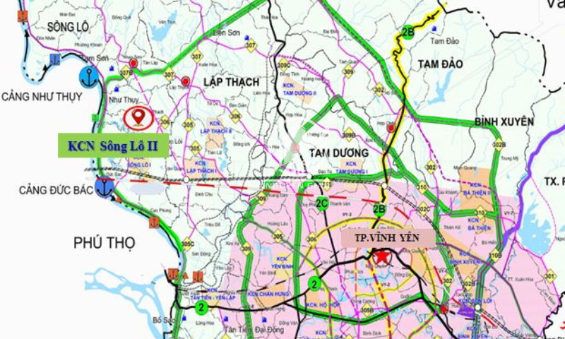 Khu công nghiệp Sông Lô II với vị trí đắc chỉ cách đường cao tốc Nội Bài – Lào Cai 5km, rất thuận tiện cho việc đi lại giữa Hà Nội và tỉnh biên giới Lào Cai.