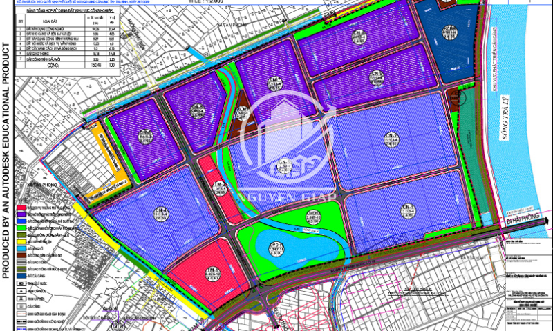 Giao thông nội bộ: Đường trục chính trung tâm mỗi bên rộng 11m, dải phân cách giữa rộng 8m, vỉa hè mỗi bên rộng 6m. Đường phụ lòng đường 15m, vỉa hè mỗi bên rộng 5m.