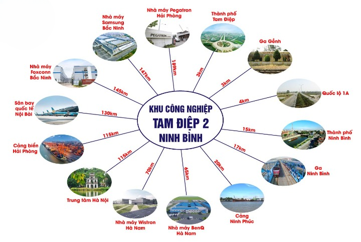 Khoảng cách từ KCN Tam Điệp II tới các cửa ngõ kinh tế
