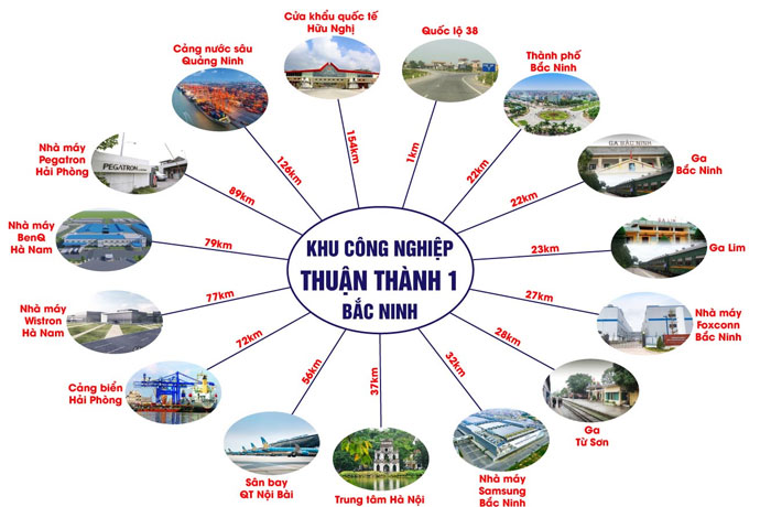 Khoảng cách từ khu công nghiệp Thuận Thành tới các cửa ngõ kinh tế
