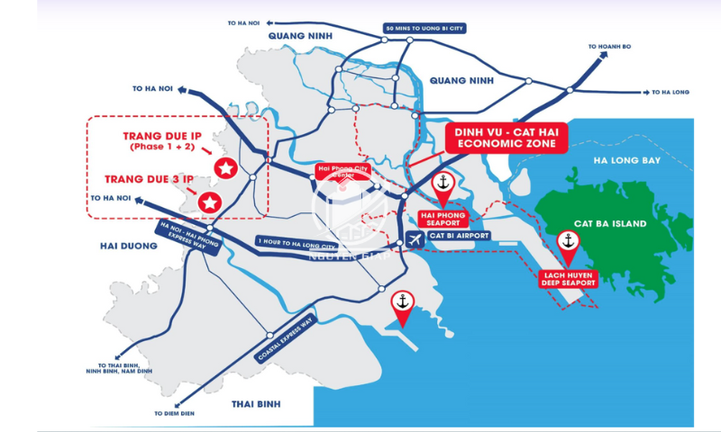 Vị trí địa lý khu công nghiệp Tràng Duệ 3 kết nối vùng vô cùng thuận tiện. Cụ thể: