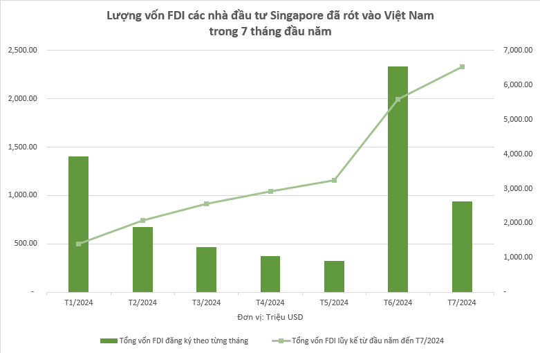Với tổng vốn FDI đăng ký gần 6,52 tỷ USD, quốc gia này hiện đang dẫn đầu trong tổng số 91 quốc gia, vùng lãnh thổ đã đầu tư vào Việt Nam trong 7 tháng 2024.